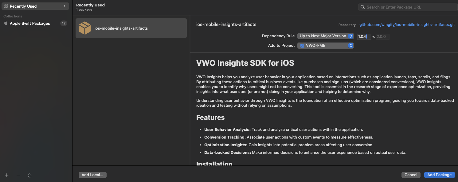 Note: - SDK supports SwiftUI VWO-Insights v0.5.1 and above