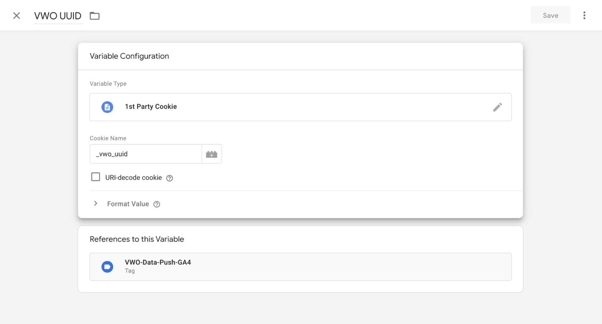 _vwo_uuidcookie. Ensure the cookie is notHttpOnlyso GTM can access it.