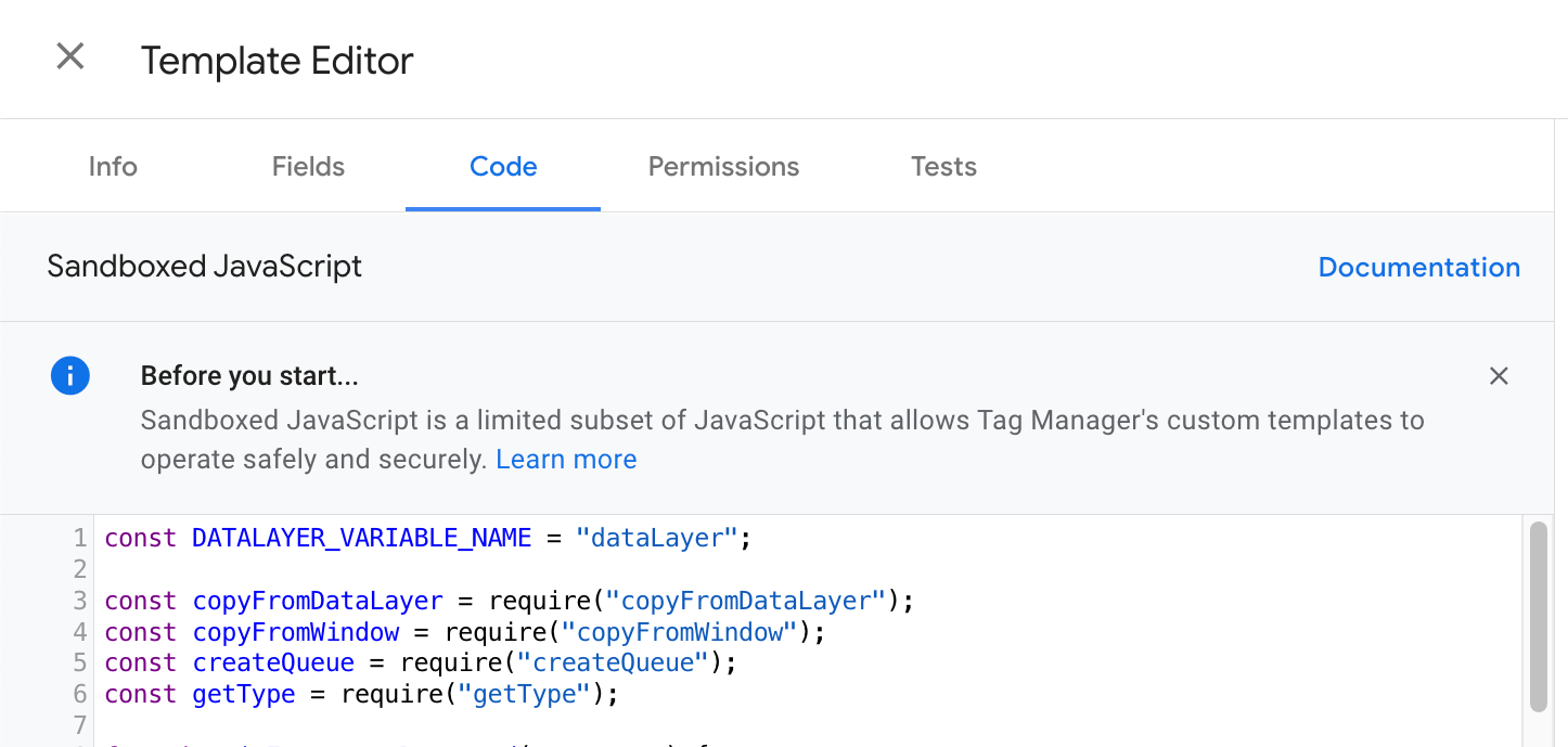 From your GTM dashboard, access Templates > Tag Templates > VWO Event Streamer > Code.